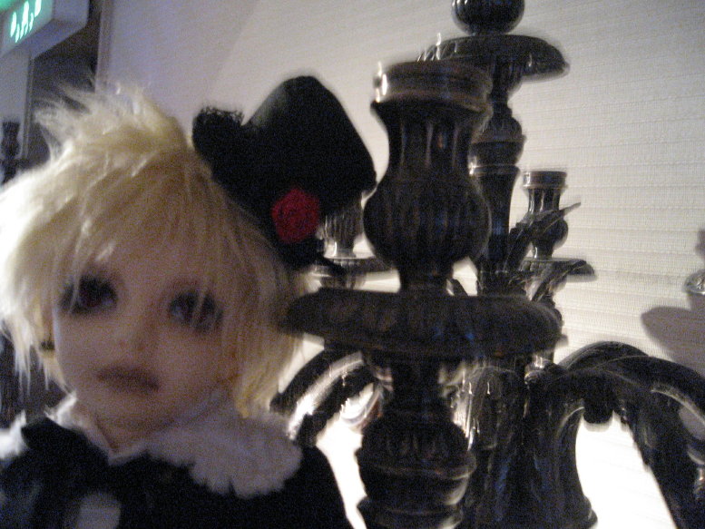 シャンデリアの前でも撮ってみる。もうだいぶ日が暮れてきたので暗いところでの撮影が難しくなってきた。こういう機会でもないかぎり、なかなかコンチェルトでシャンデリアをピンで撮る人っていないよね(笑)