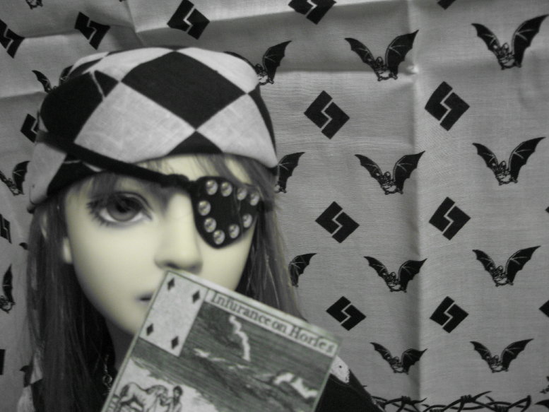 服はもちろん以前くるみさんに作ってもらった軍服(←これ基本 笑)で、やっぱり軍服には眼帯が必需品よねー(←一部の人にしか分からないネタだなー)と急いで眼帯をこさえ、これになんとなく奏に買ったジャッケットを着せたらなんとピッタリ!